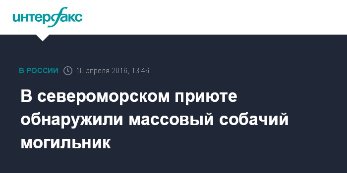 Москва. 10 апреля. INTERFAX.RU - Прокуратура Североморска (Мурманская область) начала проверку по факту несанкционированного массового захоронения трупов собак, которые содержались в местном приюте "Верность".