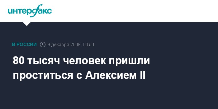 Москва. 9 декабря. ИНТЕРФАКС - В Москве около 80 тысяч человек пришли проститься с патриархом Московским и всея Руси Алексием II, сообщили "Интерфаксу" в управлении информации и общественных связей ГУВД столицы.