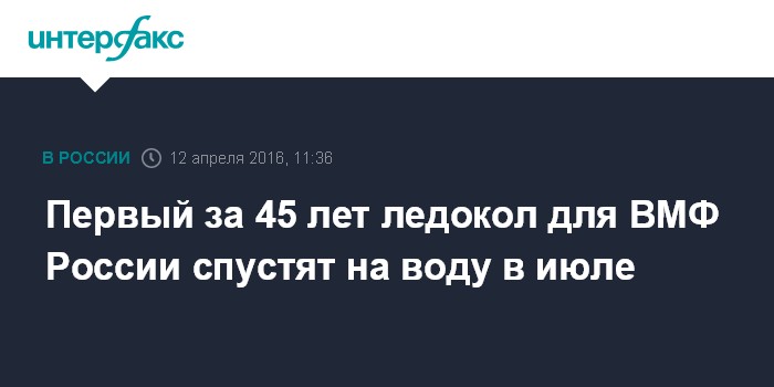 Москва. 12 апреля. INTERFAX.RU - "Адмиралтейские верфи" планируют спустить на воду головной ледокол проекта 21180 "Илья Муромец" в июле 2016 года, заявил во вторник "Интерфаксу" источник в военно-промышленном комплексе.