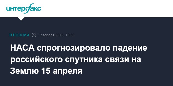 НАСА спрогнозировало падение российского спутника связи на Землю 15 апреля