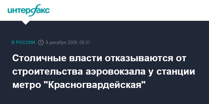 Столичные власти отказываются от строительства аэровокзала у станции метро "Красногвардейская"