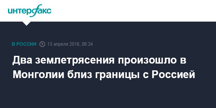 Москва. 13 апреля. INTERFAX.RU - Два подземных толчка зафиксировано в ночь на среду на северо-западе Монголии близ границы с Тувой и Республикой Алтай, сообщает Геофизическая служба СО РАН.