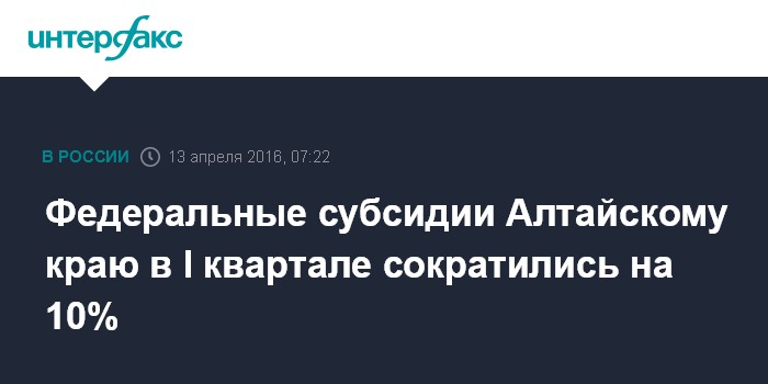 Федеральные субсидии Алтайскому краю в I квартале сократились на 10%