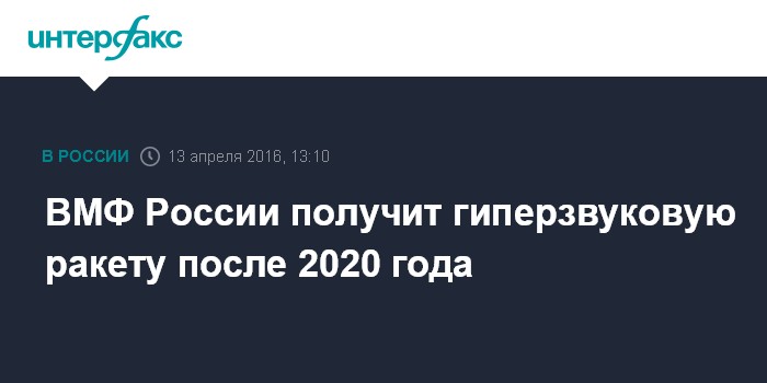 ВМФ России получит гиперзвуковую ракету после 2020 года