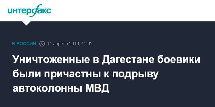 Москва. 14 апреля. INTERFAX.RU - Трое боевиков, уничтоженные в поселке Ленинкент Махачкалы, были причастны к подрыву автоколонны с военнослужащими МВД, сообщили в НАК.