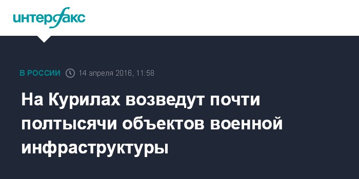 Москва. 14 апреля. INTERFAX.RU - Обустройство объектов инфраструктуры Вооруженных сил РФ ведёт Спецстрой на островах Курильской гряды Итуруп и Кунашир.