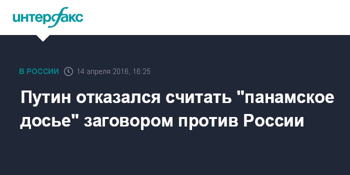 Москва. 14 апреля. INTERFAX.RU - В России не считают публикацию "панамских документов" заговором против России, а расценивают их как информационный вброс, заявил президент РФ Владимир Путин.