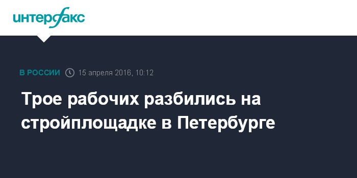 Москва. 15 апреля. INTERFAX.RU - Три уроженца Таджикистана погибли, упав с большой высоты во время монтажных работ на стройке в Калининском районе Петербурга, сообщил "Интерфаксу" источник в правоохранительных органах города в пятницу.