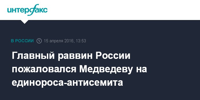 Главный раввин России пожаловался Медведеву на единороса-антисемита