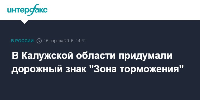 Москва. 15 апреля. INTERFAX.RU - Знак "Зона торможения" разработан в Калужской области для обозначения пешеходных переходов, сообщил начальник регионального управления ГИБДД Алексей Холопов в пятницу на пресс-конференции.