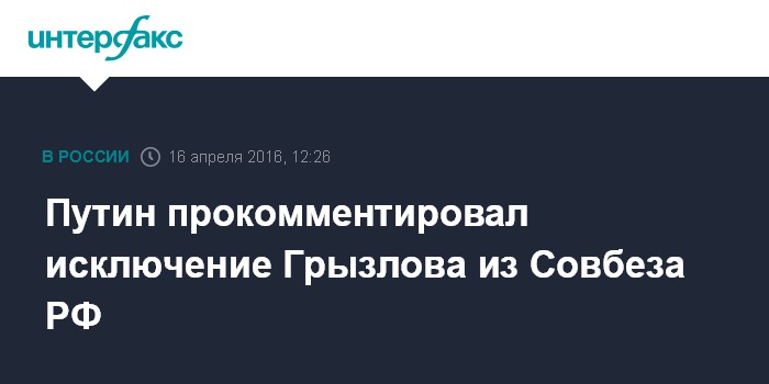 Москва. 16 апреля. INTERFAX.RU - Президент России Владимир Путин отрицает, что недавнее исключение Бориса Грызлова, являющегося спецпредставителем главы государства по Украине, из состава Совета безопасности страны может означать понижение уровня российского посредничества в урегулировании на украинском направлении.
