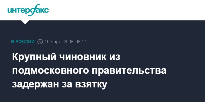 Москва. 19 марта. INTERFAX.RU - В Москве по подозрению в получении взятки задержан первый заместитель министра потребительского рынка и услуг правительства Московской области.