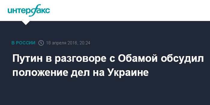 Москва. 18 апреля. INTERFAX.RU - Президенты России и США Владимир Путин и Барак Обама в ходе телефонного разговора, помимо темы Сирии, обменялись мнениями и по Украине.