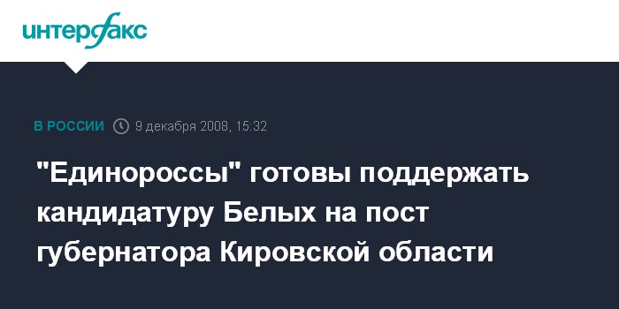 Москва. 9 декабря. INTERFAX.RU - Председатель высшего совета партии "Единя Россия", спикер Госдумы Борис Грызлов заявил, что "единороссы" готовы поддержать кандидатуру Никиты Белых для утверждения его на посту губернатора Кировской области.