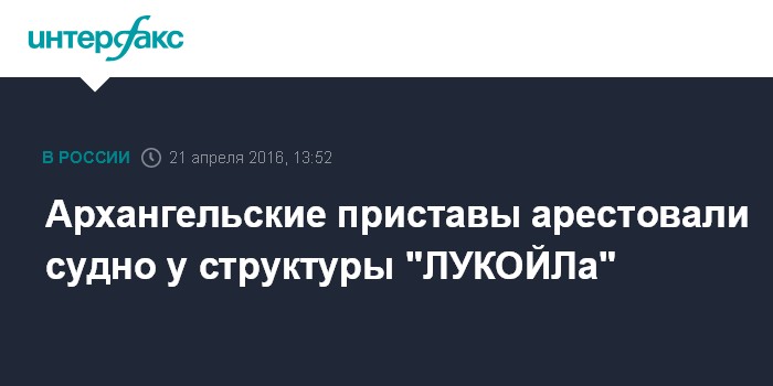Москва. 21 апреля. INTERFAX.RU - Специалисты Управления Федеральной службы судебных приставов по Архангельской области наложили арест на судно "Юшар", находящегося во владении ООО "Варандейский терминал" (принадлежит ОАО "ЛУКОЙЛ").