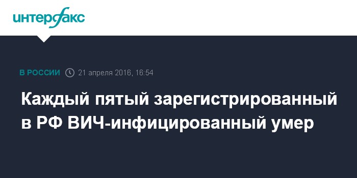 Каждый пятый зарегистрированный в РФ ВИЧ-инфицированный умер