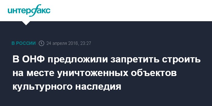 Москва. 24 апреля. INTERFAX.RU - Активисты Общероссийского народного фронта предлагают региональным властям ввести запрет на новое строительство на месте уничтоженных памятников культуры.