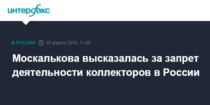 Москва. 25 апреля. INTERFAX.RU - Новый уполномоченный по правам человека в РФ Татьяна Москалькова поддерживает запрет деятельности коллекторских агентств и изменение деятельности службы судебных приставов.
