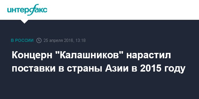 Москва. 25 апреля. INTERFAX.RU - АО "Концерн "Калашников" в 2015 году усилило присутствие на рынках Азии и Африки, заявил в интервью "Интерфаксу" управляющий директор по проблемным и непрофильным активам ГК "Ростех" Александр Назаров.