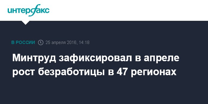 Минтруд зафиксировал в апреле рост безработицы в 47 регионах