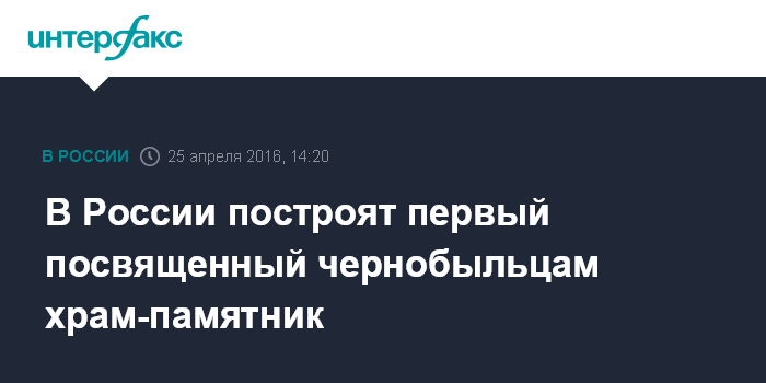 Москва. 25 апреля. INTERFAX.RU - Строительство первого в России храма, который будет посвящен памяти ликвидаторов последствий аварии на Чернобыльской АЭС, начнут летом в селе Заломное Белгородской области.