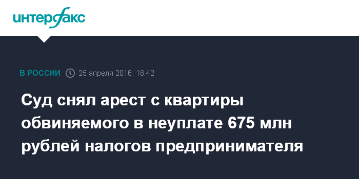 Суд снял арест с квартиры обвиняемого в неуплате 675 млн рублей налогов предпринимателя