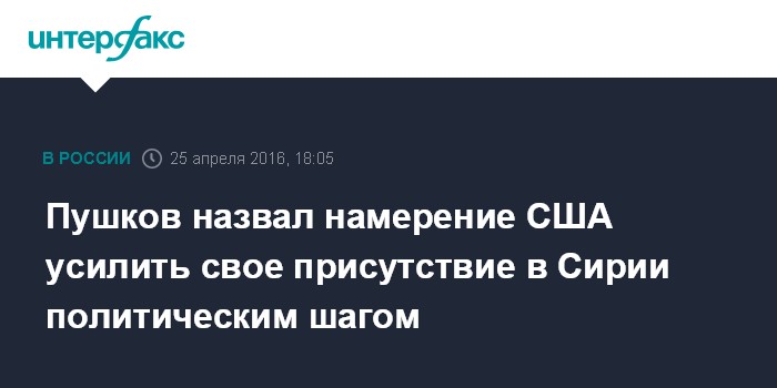 Москва. 25 апреля. INTERFAX.RU - Глава комитета Госдумы по международным делам Алексей Пушков считает, что намерение США усилить свое присутствие в Сирии - это, скорее, не военный, а политический шаг.