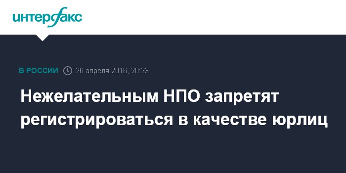 Москва. 26 апреля. INTERFAX.RU - Минюст России приступил к разработке поправок в законодательство, предусматривающих запрет нежелательным в РФ зарубежным неправительственным организациям (НПО) регистрироваться в качестве юридического лица.