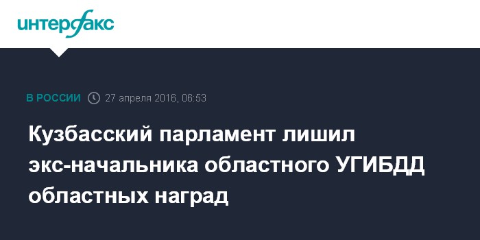 Кузбасский парламент лишил экс-начальника областного УГИБДД областных наград