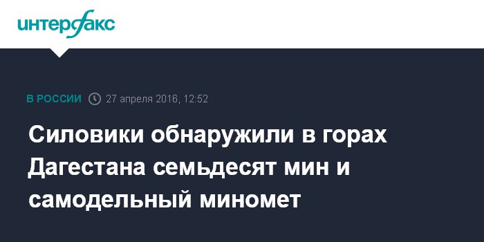 "70 минометных мин и самодельный миномет обнаружены сотрудниками ГУ МВД России по СКФО в результате оперативно-поисковых мероприятий", - говорится в сообщении.
