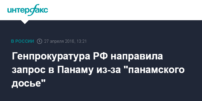 Москва. 27 апреля. INTERFAX.RU - Генпрокуратура РФ отправила запрос властям Панамы в связи с проверкой "панамских документов", заявил глава ведомства Юрий Чайка.