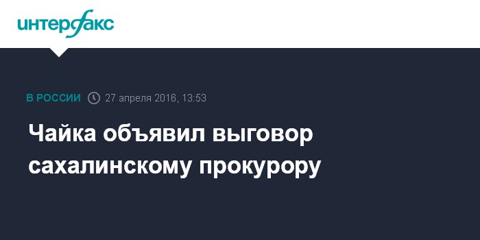 "Мною принято решение объявить прокурору Сахалинской области выговор, строгий выговор - заместителям прокурора, курирующим данное направление, о неполном соответствии служебному положению объявлено прокурору района", - сказал Чайка, отвечая в среду на вопросы членов Совета Федерации.