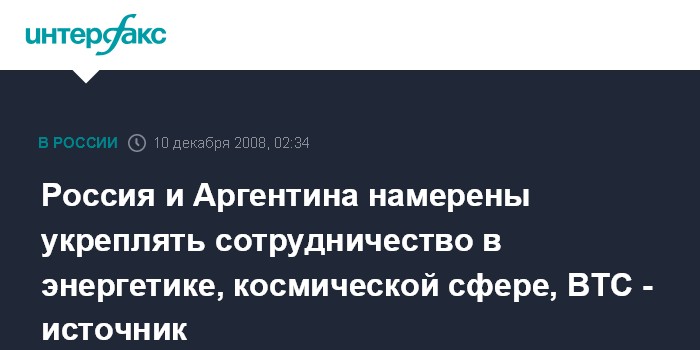 Россия и Аргентина намерены укреплять сотрудничество в энергетике, космической сфере, ВТС - источник