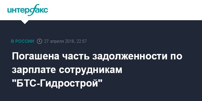 Погашена часть задолженности по зарплате сотрудникам "БТС-Гидрострой"