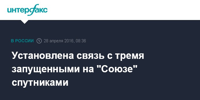 Москва. 28 апреля. INTERFAX.RU - С тремя спутниками, выведенными на орбиту ракетой-носителем "Союз 2.1а" с космодрома Восточный установлена связь, сообщили "Интерфаксу" в Роскосмосе.