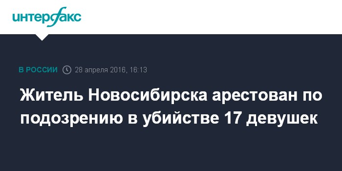 Житель Новосибирска арестован по подозрению в убийстве 17 девушек