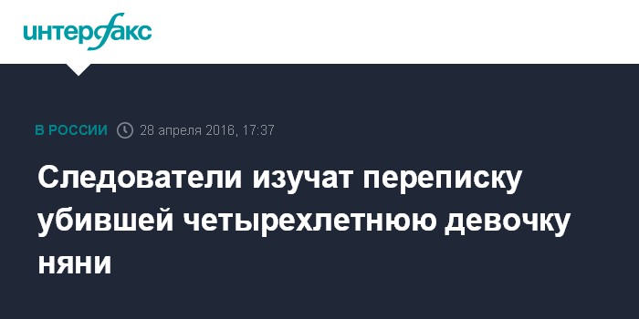 Москва. 28 апреля. INTERFAX.RU - Следствие намерено изучить переписку в социальных сетях няни из Узбекистана Гюльчехры Бобокуловой, обвиняемой в убийстве четырехлетнего ребенка на северо-западе Москвы.