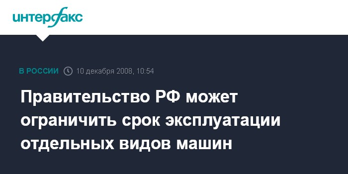 Москва. 10 декабря. INTERFAX.RU - Правительство РФ обсуждает возможность ограничения предельных сроков эксплуатации отдельных видов транспортных средств на территории России, говорится в пресс-релизе к заседанию правительства, опубликованном на сайте кабинета министров.