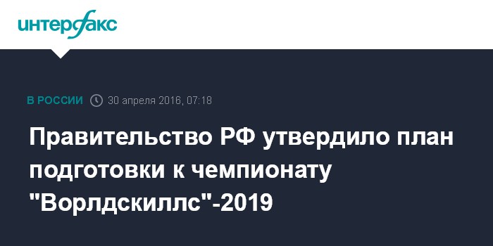 Правительство РФ утвердило план подготовки к чемпионату "Ворлдскиллс"-2019