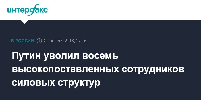 Путин уволил восемь высокопоставленных сотрудников силовых структур