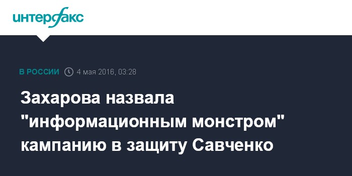 Захарова назвала "информационным монстром" кампанию в защиту Савченко