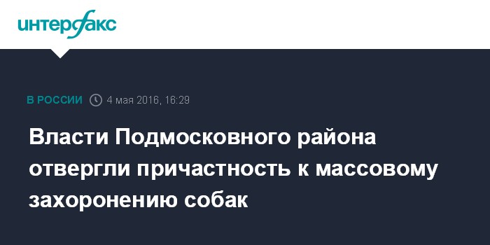 Москва. 4 мая. INTERFAX.RU - В руководстве Пушкинского района Московской области заявили, что не знают, по какой причине на территории муниципалитета появилась массовое захоронение собак.