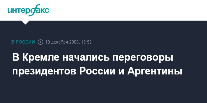 Москва. 10 декабря. INTERFAX.RU - Президенты России и Аргентины Дмитрий Медведев и Кристина Фернандес де Киршнер проводят переговоры в Кремле.
