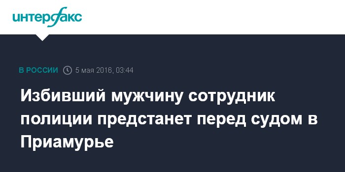 Избивший мужчину сотрудник полиции предстанет перед судом в Приамурье