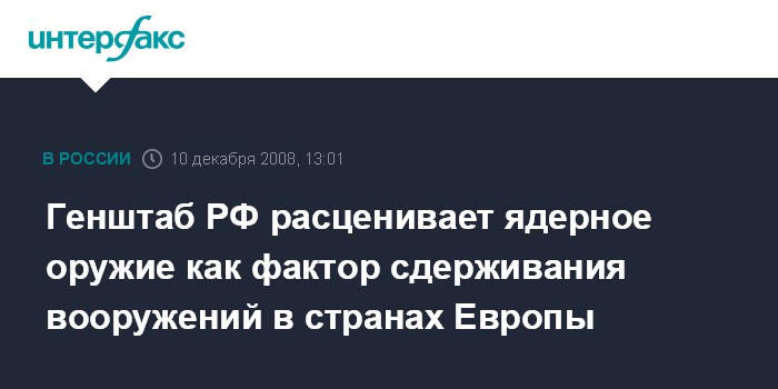 Генштаб РФ расценивает ядерное оружие как фактор сдерживания вооружений в странах Европы