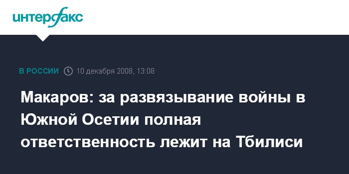 Москва. 10 декабря. INTERFAX.RU - Начальник Генштаба ВС РФ генерал армии Николай Макаров заявил в среду, что Тбилиси несет полную ответственность за развязывание войны в Южной Осетии в августе.