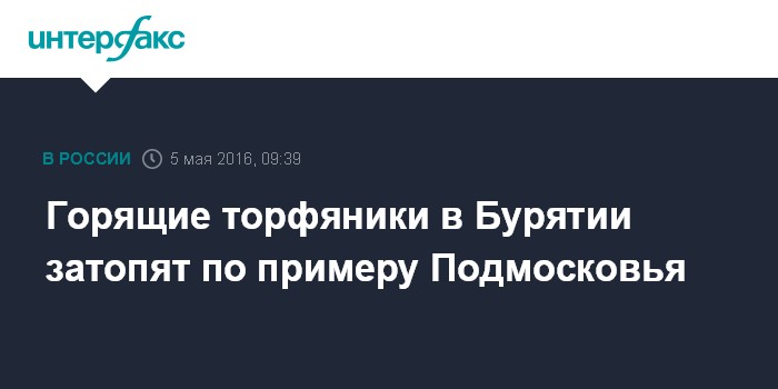 Москва. 5 мая. INTERFAX.RU - Власти Бурятии намерены затопить горящие торфяники в Кабанском районе республики, сообщает пресс-служба главы региона.