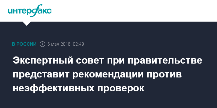 Как сообщили "Интерфаксу" в пресс-службе Открытого правительства, экспертному совету при правительстве поручено к сентябрю текущего года обобщить и представить предложения по комплексному подходу к формированию механизмов исключения безрезультативных проверок.