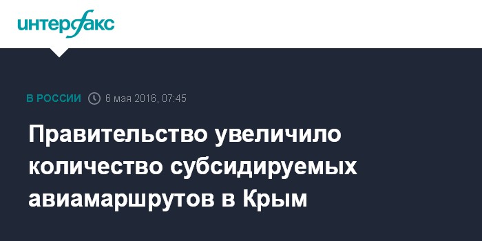 Москва. 6 мая. INTERFAX.RU - Премьер-министр РФ Дмитрий Медведев подписал постановление, в соответствии с которым увеличиваются количества субсидируемых авиамаршрутов в Крым, сообщает в пятницу официальный сайт правительства России.
