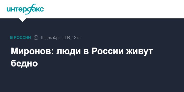 "Люди наши в большинстве своем живут бедно. Что бы ни говорили, какая бы статистика это не фиксировала - люди живут бедно", - сказал Миронов на заседании Саратовской областной думы в среду. "Только у нас есть работающие бедные. Это практически все бюджетники, что является нонсенсом для любого другого государства, где сейчас, если работают, то по определению не могут быть бедными", - отметил спикер.
